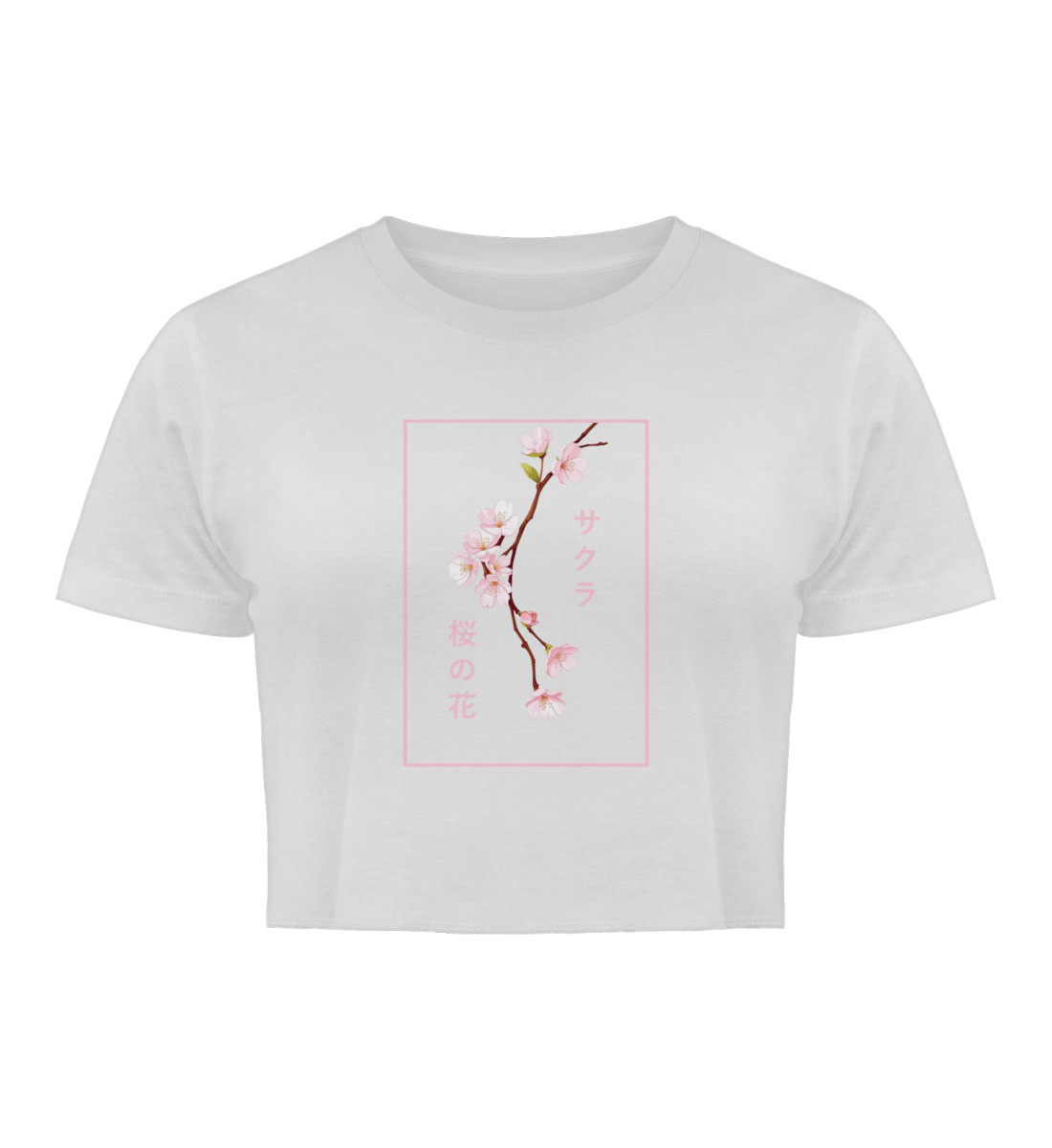 Unser Crop-Top mit Sakura-Blütenprint ist ein Must-Have für alle Fashionistas, die verspielte Eleganz lieben.