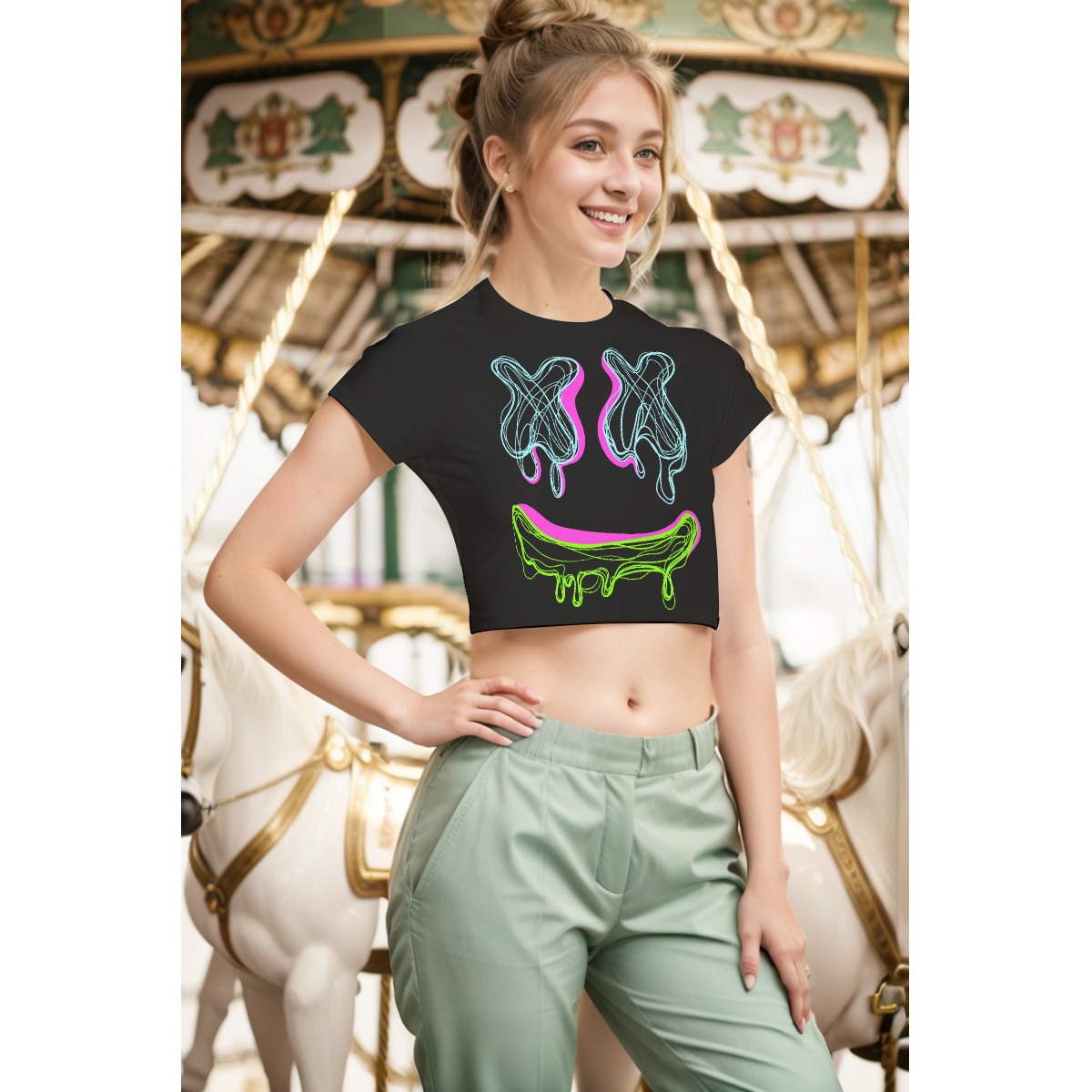 Verleih deinem Look ein Lächeln. Dieses stylische Crop-Top aus atmungsaktiven Stoff ist durch seinen Tragekomfort perfekt für den Alltag und ebenso ideal für Sport.